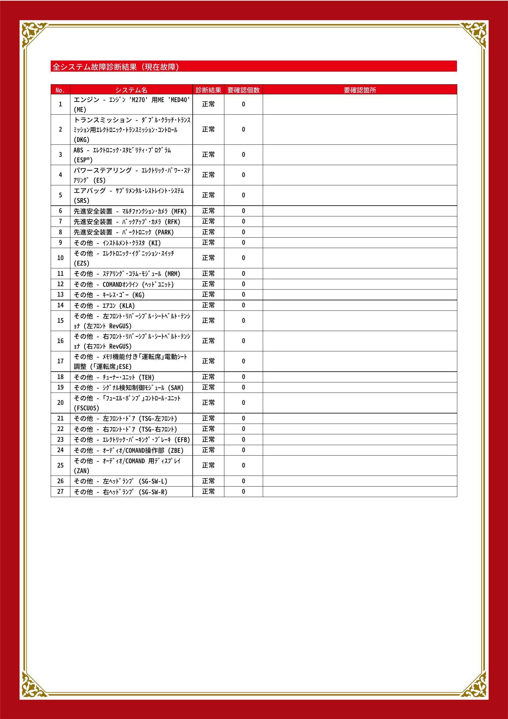 | 保証項目 | 1ヶ月以内なら走行距離無制限にてエンジン、トランスミッション、ハイブリッド、ステアリング、ブレーキの各機構における主要項目を無償修理(または交換)いたします。 |