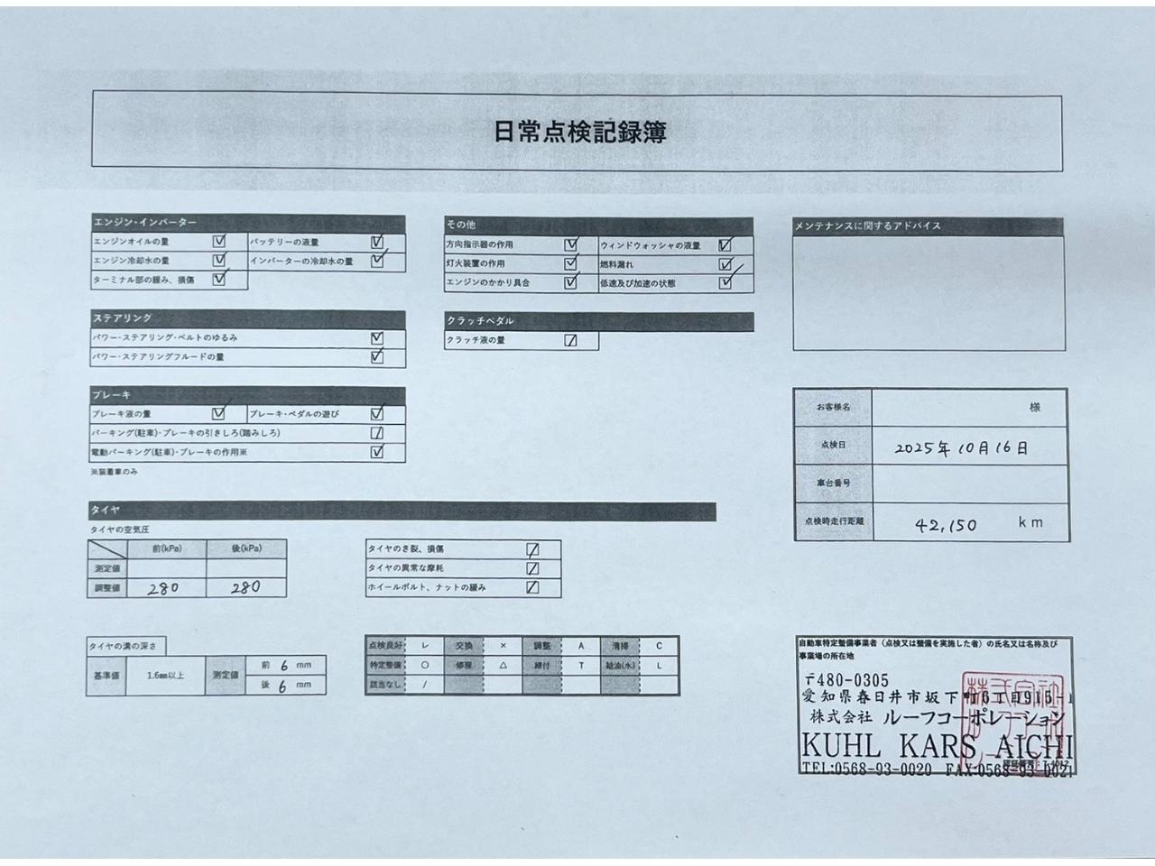 | KUHL中古車メンテナンスパックです。定期点検、オイル交換などのメンテナンス作業の他、車高調整、アライメント調整等のカスタムショップならではの項目も設定しております。その他にも多数の特典がございます。 |