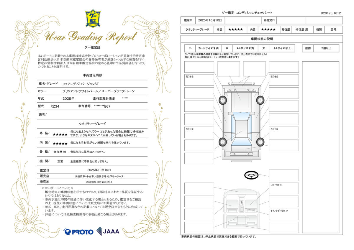計260項目 保証項目につきましては、新車保証(メーカー保証)の内容と同じ(5年間の特別保証と3年間の一般保証)になります。新車保証の内容につきましては新車の保証書(メンテナンスノート)に記載してあります。 |