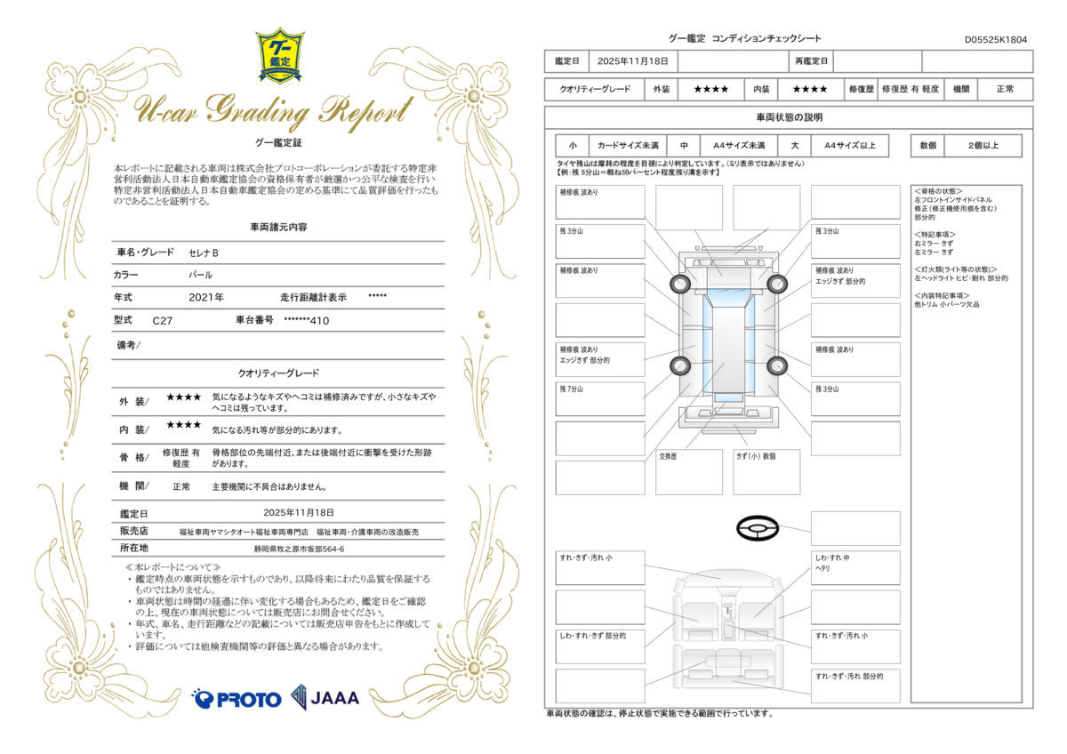 [保証付]:12ヶ月・走行無制限 当社の販売車両にはミッション・エンジン部分の50部位の1年間の無料保証をお付けしています。保証は全国で対応できて、お近くの整備工場で修理できますので、遠方でも安心してご購入下さい。 |