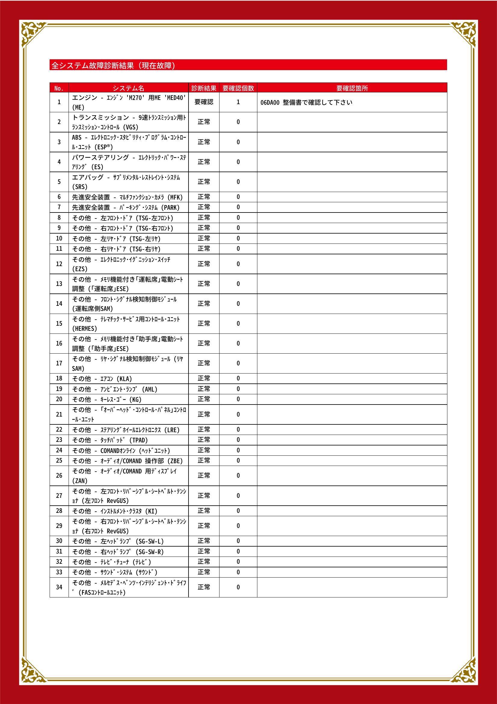 | 保証項目 | ■消耗品、油脂類、外装は保証対象外 全ての消耗部品の補充、交換に要する費用(例:ベルト類、ブレーキディスク・パッド、電球の交換等)は保証修理に含まれません |