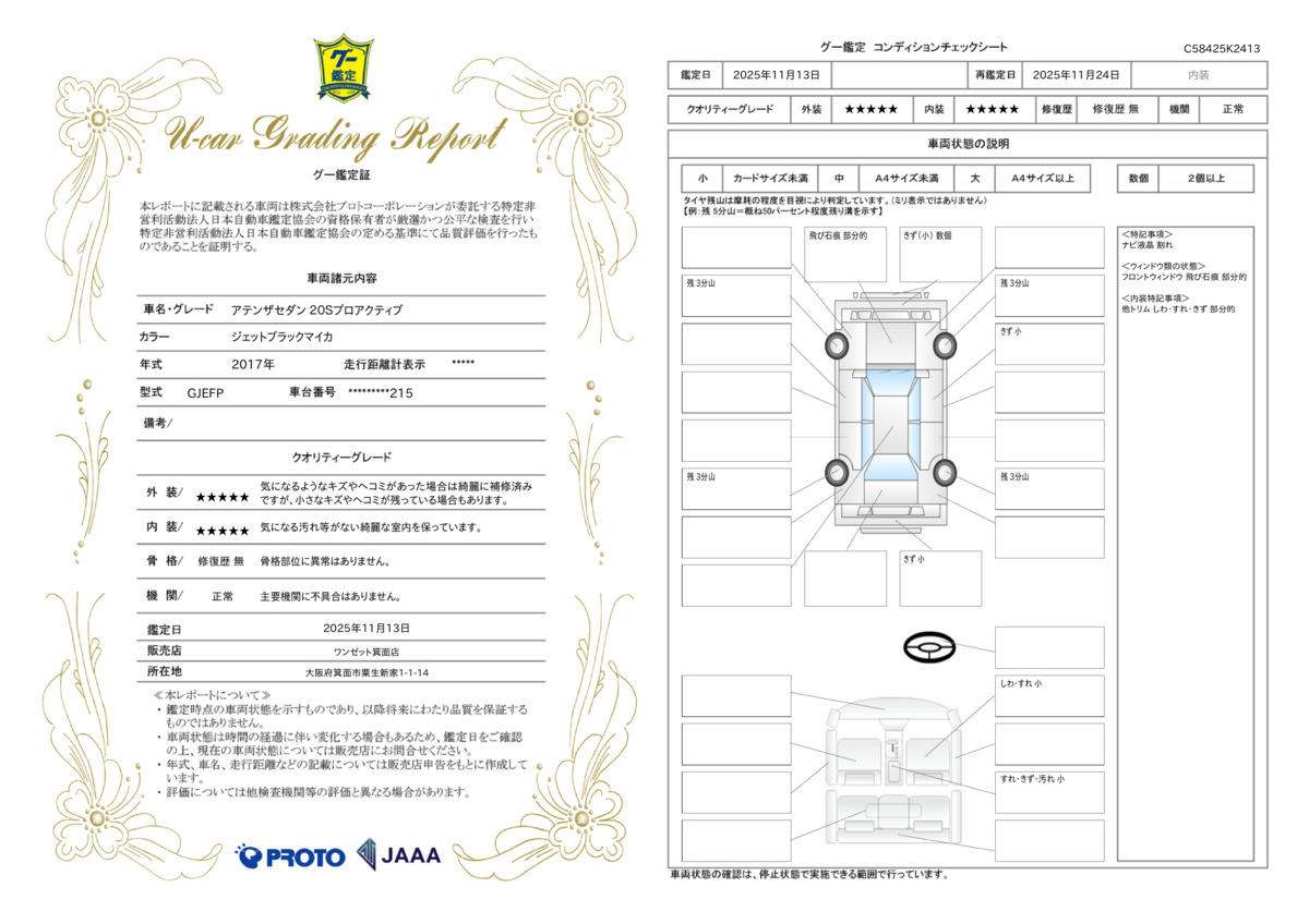 | 保証について | [保証付]:3ヶ月・3000km ※いずれか早い時期が保証適用の条件となります。 |