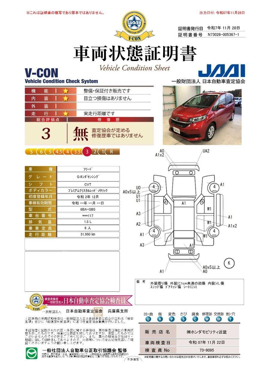 | 保証修理受付先 | 当店へご連絡下さい。日本全国で約2200店あるホンダのお店でサービスを受けることができます。これによりドライブ中だけでなく、引っ越し先でも安心、充実したカーライフを楽しむことができます。 |