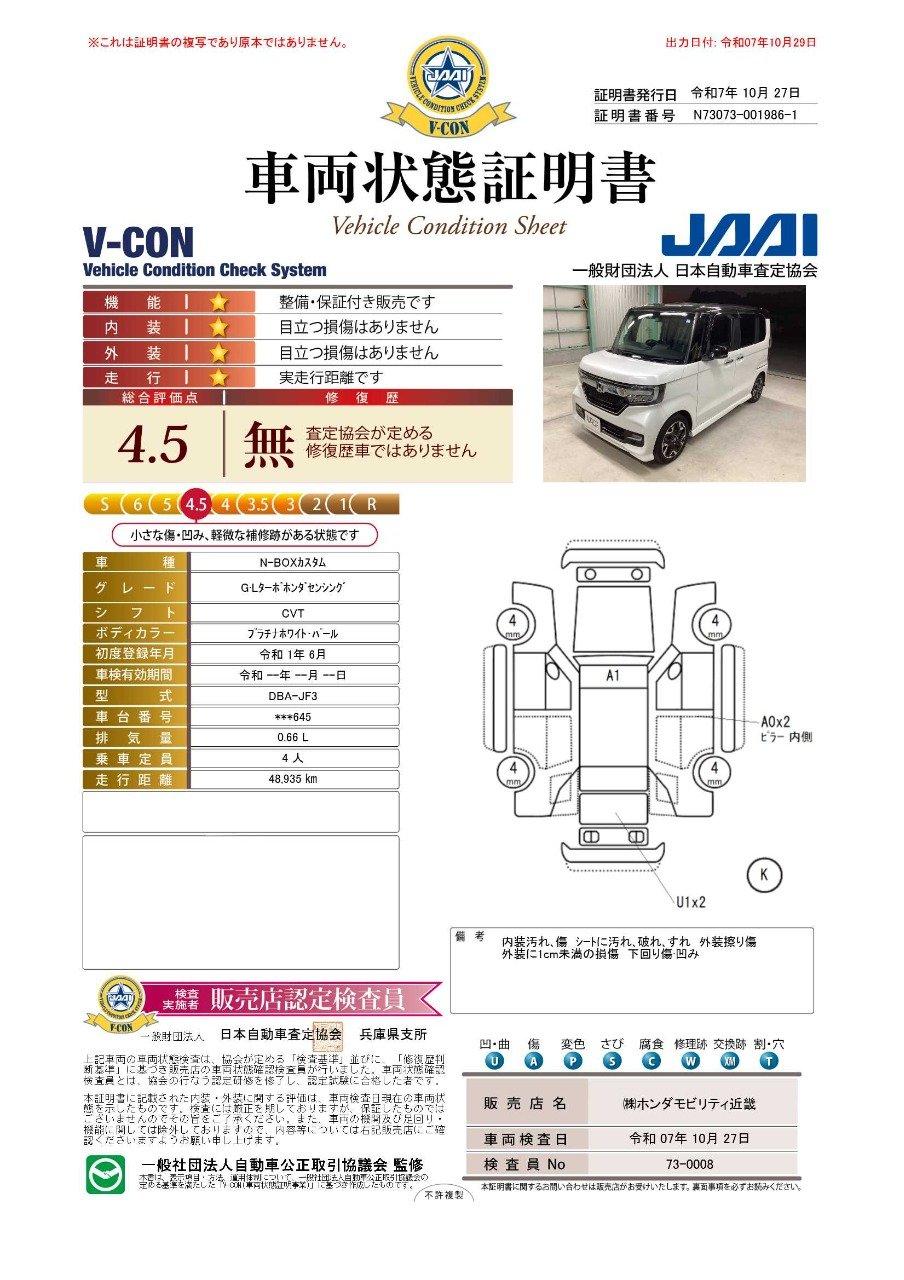 | 保証修理受付先 | 当店へご連絡下さい。当社または、お近くのホンダディーラーサービス工場をお手配いたします。 |