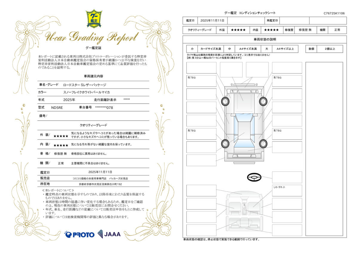 [保証付]:2030(令和12)年5月まで・100000km ※いずれか早い時期が保証適用の条件となります。 安心のメーカー保証の継続手続きをして納車いたします。メーカー保証が付いていれば、エンジンなど主要部品は新車登録から5年間(輸入車は3年間)、メーカーが保証対応してくれます。 |