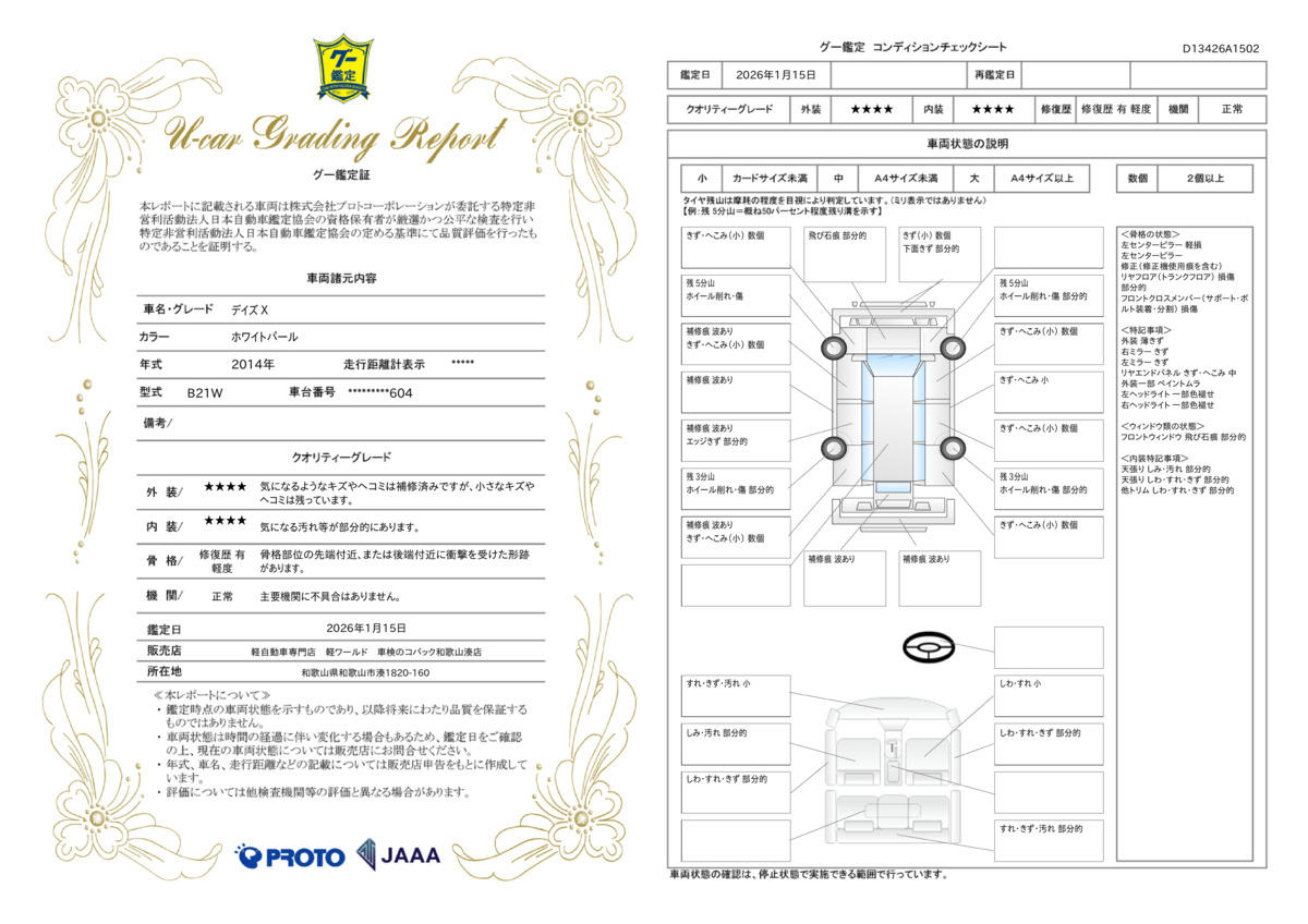 日産 デイズ X グー鑑定書付/純正ナビ/バックカメラ/アラウンドビューモニター/フルセグテレビ/Bluetooth/CD/DVD/ETC車載器/スマートキー/プッシュスタート/アイドリングストップ/ベンチシート