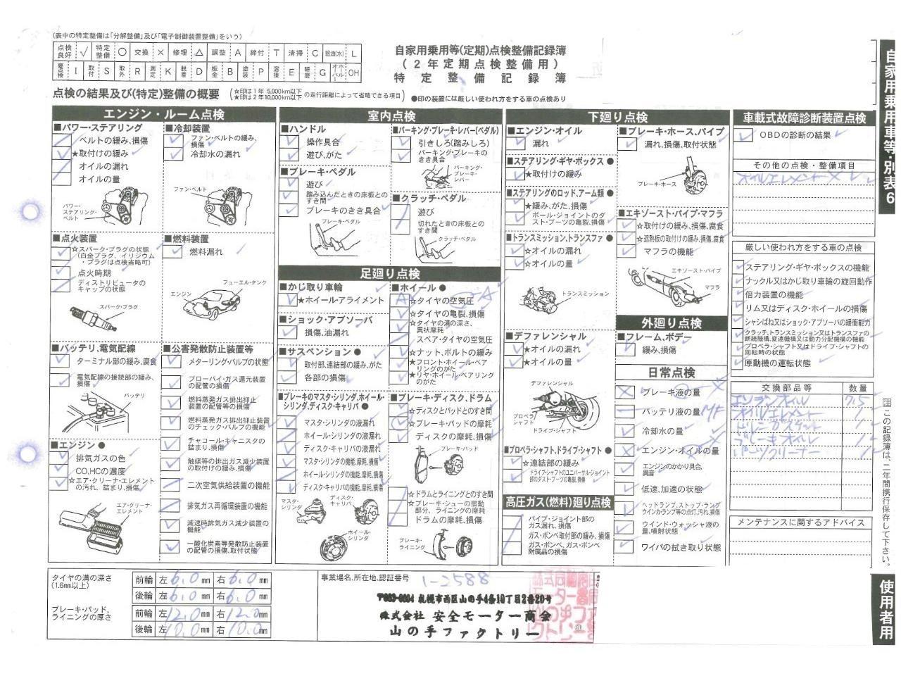 | エンジンオイル・エンジンオイルフィルター・バッテリー・ブレーキフルード・エアコンフィルター・フロントワイパーゴム・クーラントブースター・エアフィルター・エンジンインジェクタークリーナーを新品交換!!! |