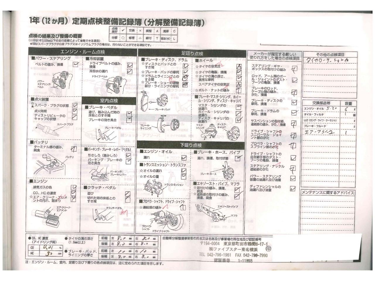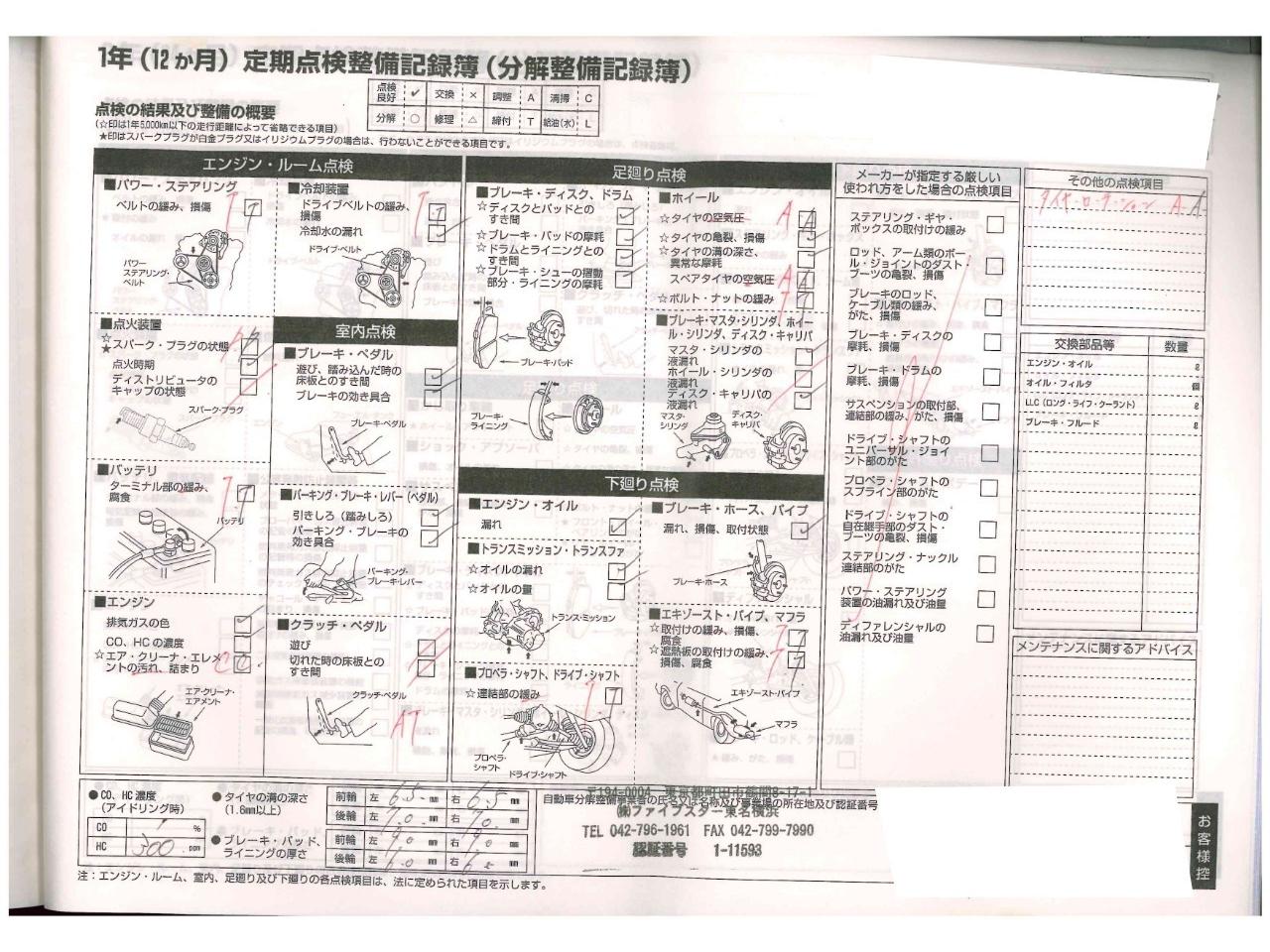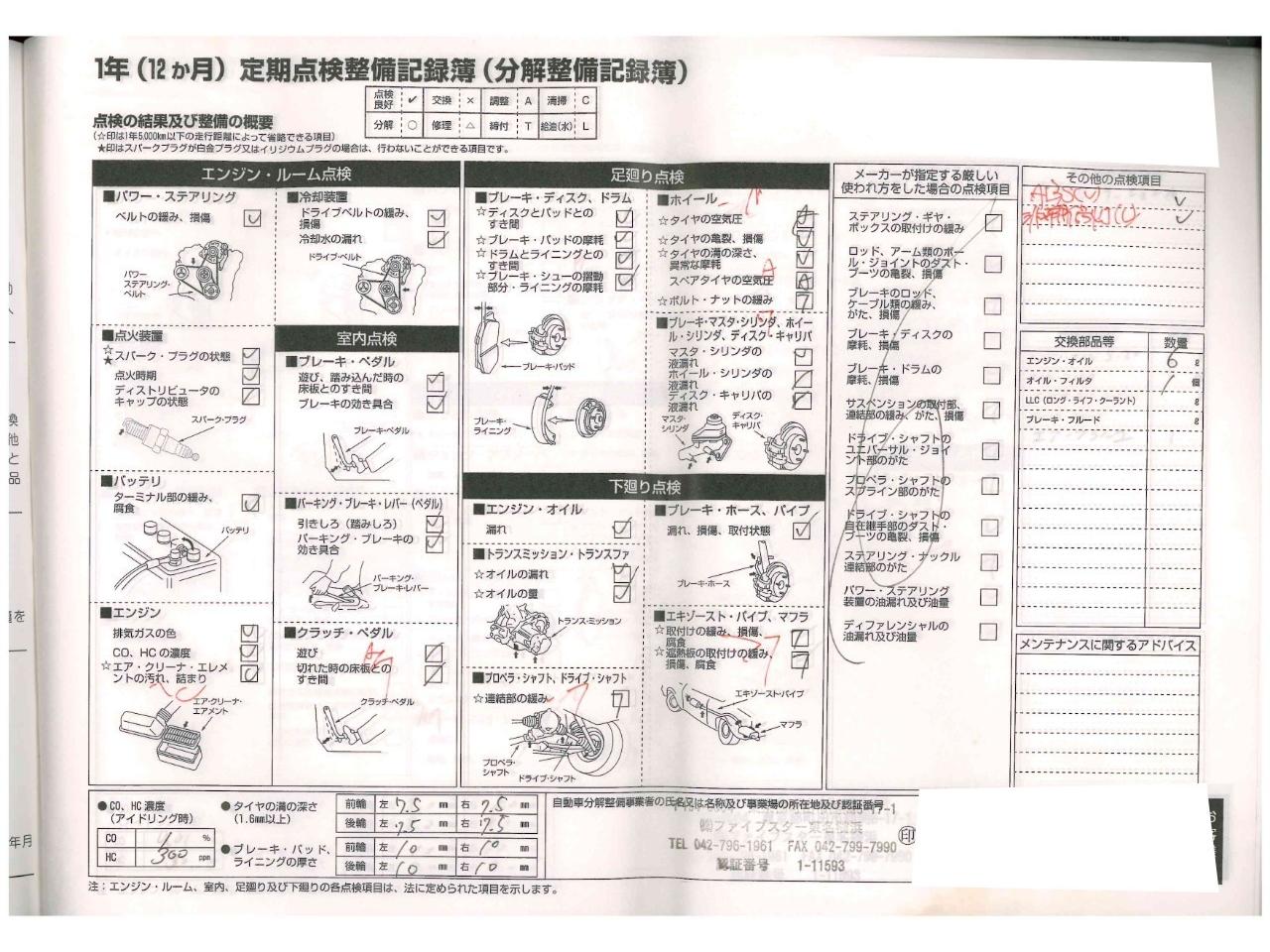 | エンジンオイル・エンジンオイルフィルター・バッテリー・ブレーキフルード・エアコンフィルター・フロントワイパーゴム・クーラントブースター・エアフィルター・エンジンインジェクタークリーナーを新品交換!!! |