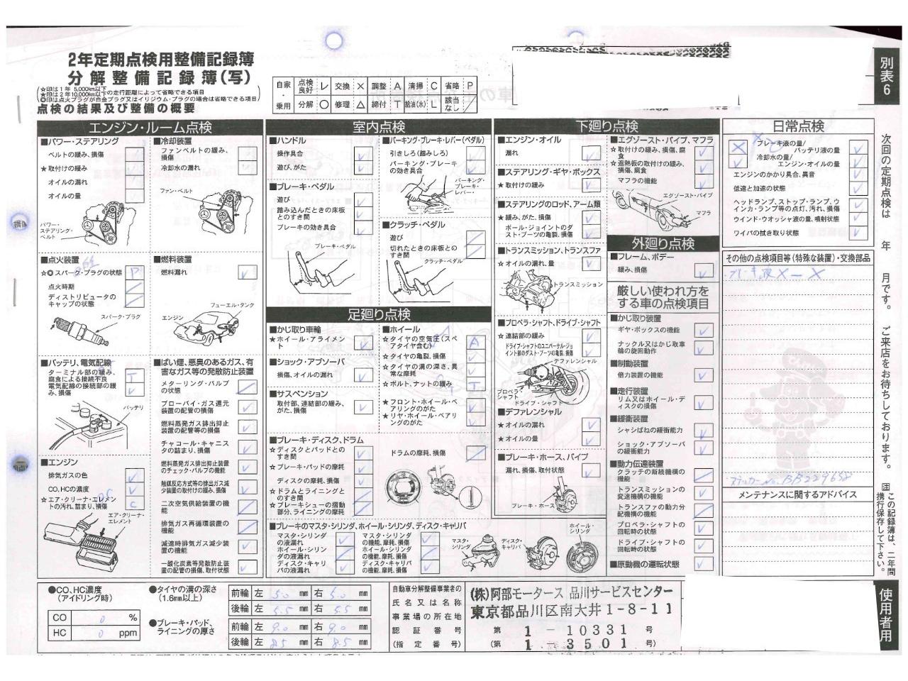 • 点検整備記録簿あり