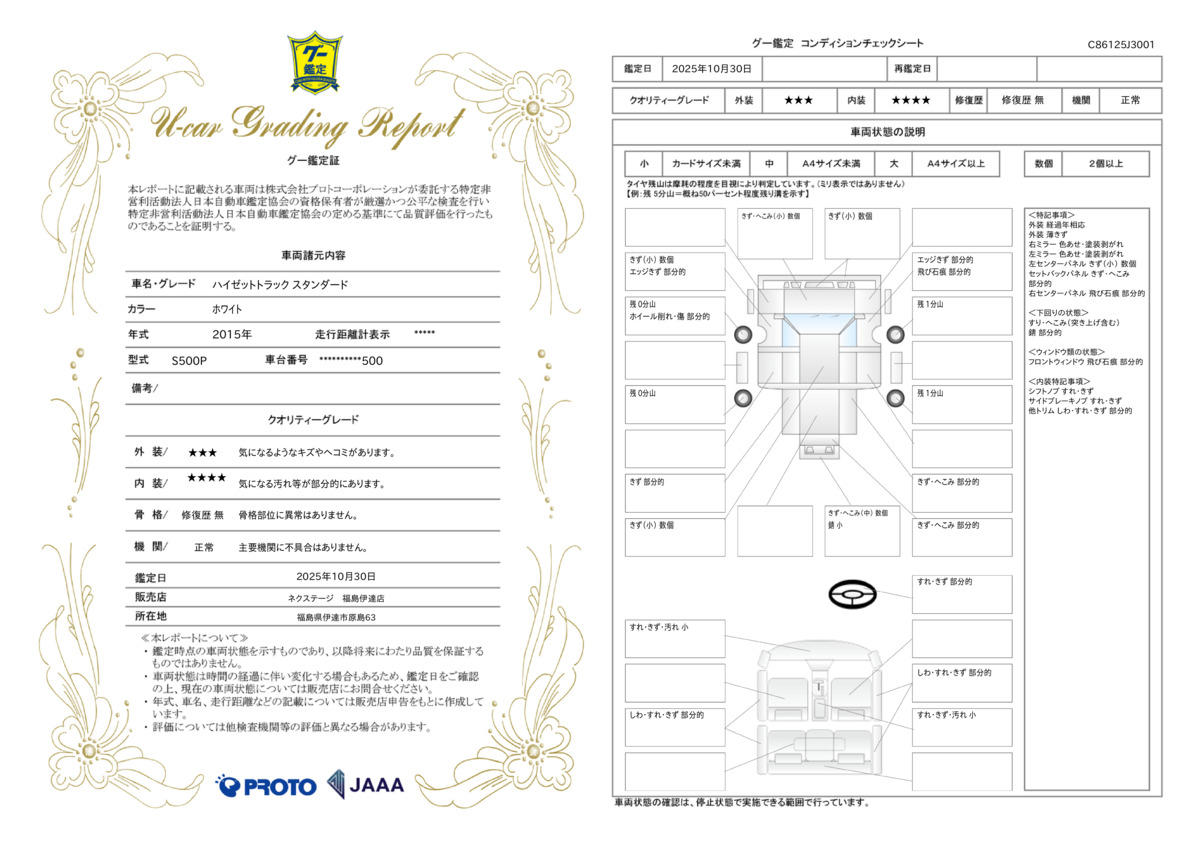弊社では、全車『修復歴なし』のお車のみ取り扱っております。専任バイヤーによる厳選した仕入れの後、入庫後の車両チェックを行い、ネクステージが認定した高品質な中古車をご提供しております。 14