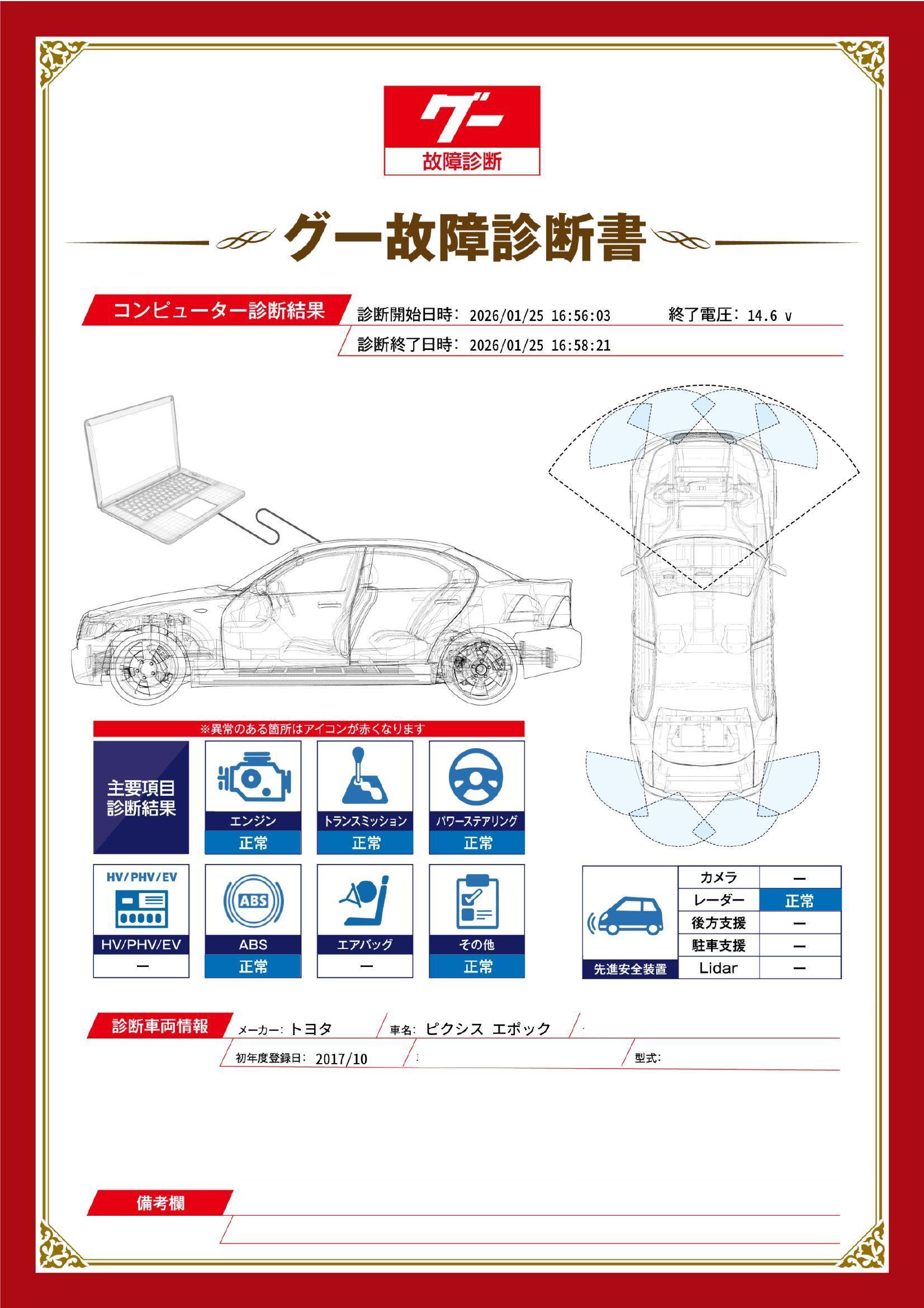 | 保証項目 | 3ヶ月・3000km以内ならエンジン、トランスミッション、ハイブリッド、ステアリング、ブレーキの各機構における主要項目を無償修理(または交換)いたします。 |
