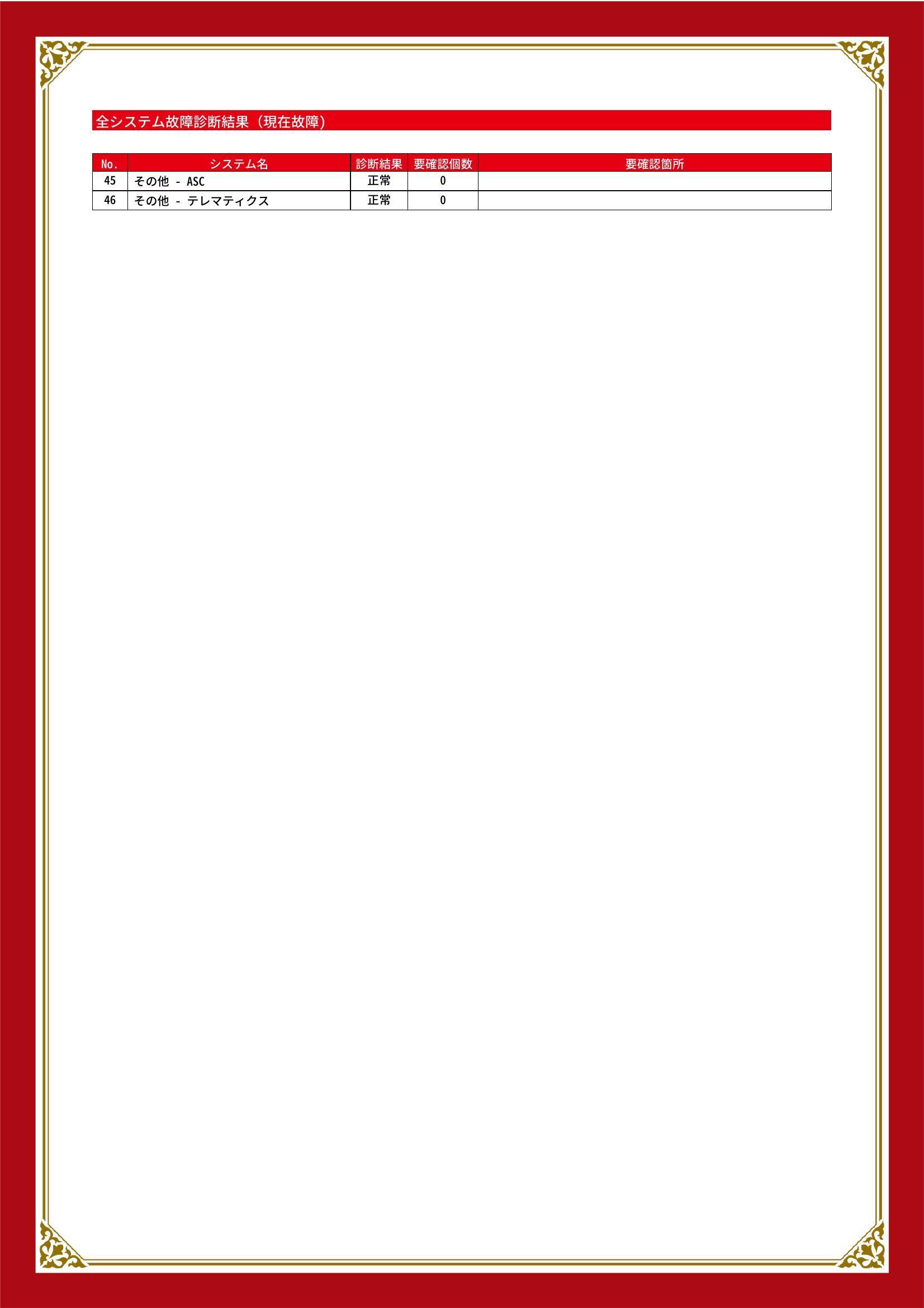 | 保証項目 | 3ヶ月・3000km以内ならエンジン、トランスミッション、ハイブリッド、ステアリング、ブレーキの各機構における主要項目を無償修理(または交換)いたします。 |