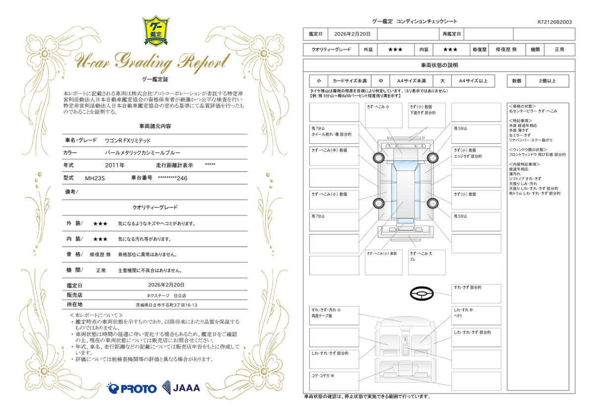 弊社では、全車『修復歴なし』のお車のみ取り扱っております。専任バイヤーによる厳選した仕入れの後、入庫後の車両チェックを行い、ネクステージが認定した高品質な中古車をご提供しております。 14