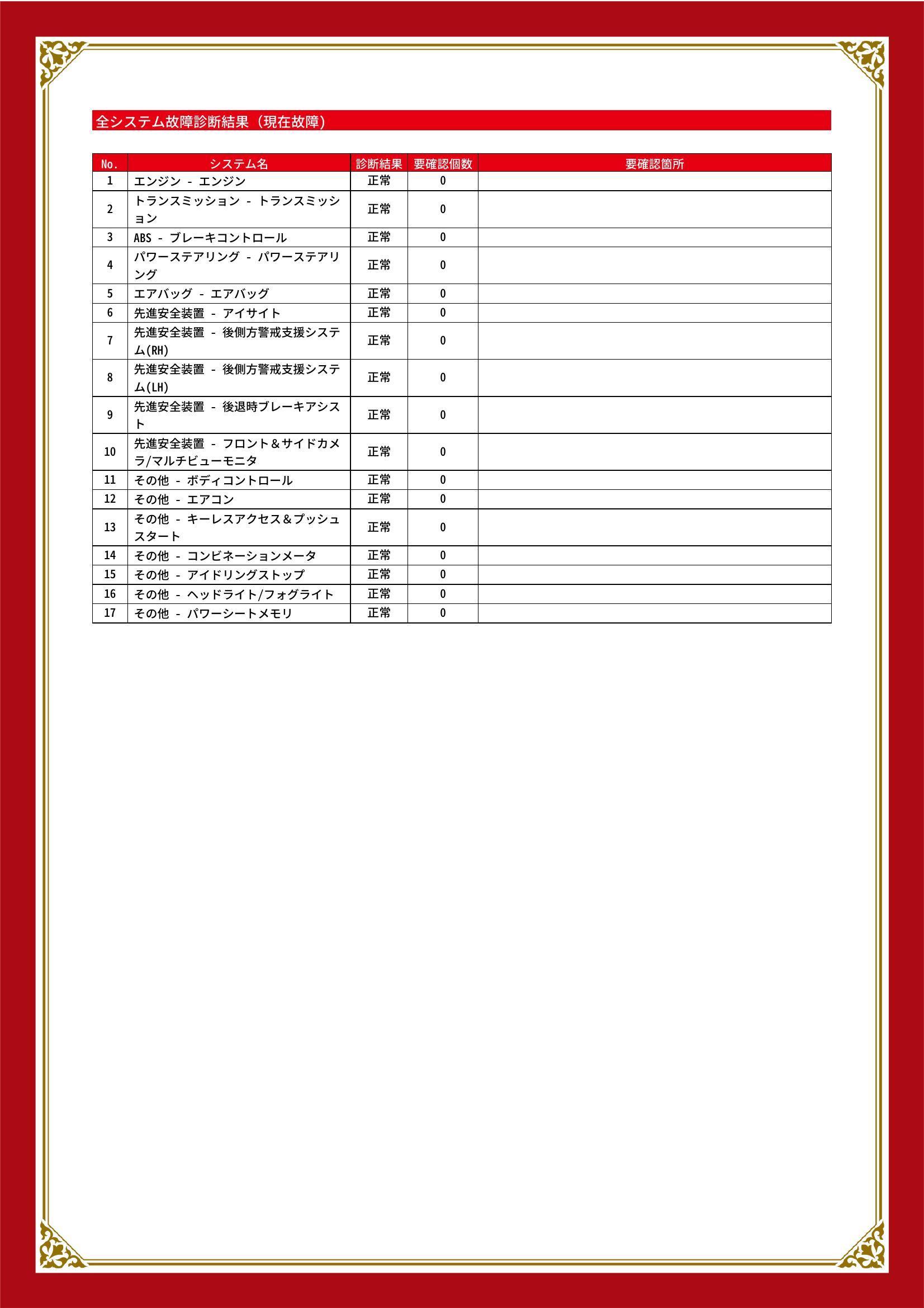 安心の最長10年・走行無制限保証(有償)をご用意。保証内容も充実はもちろん、無料点検&オイル交換や、年中無休の全国・24時間ロードサービスも付帯されておりますのでご安心下さい。 16