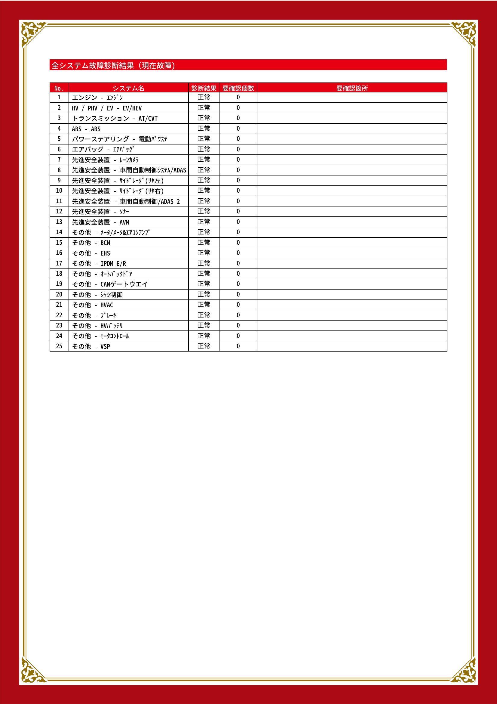 | 保証項目 | 納車後1ヶ月・1000km以内は36機構・343項目を保証いたします。詳しくは販売店までお問い合わせ下さい。 |