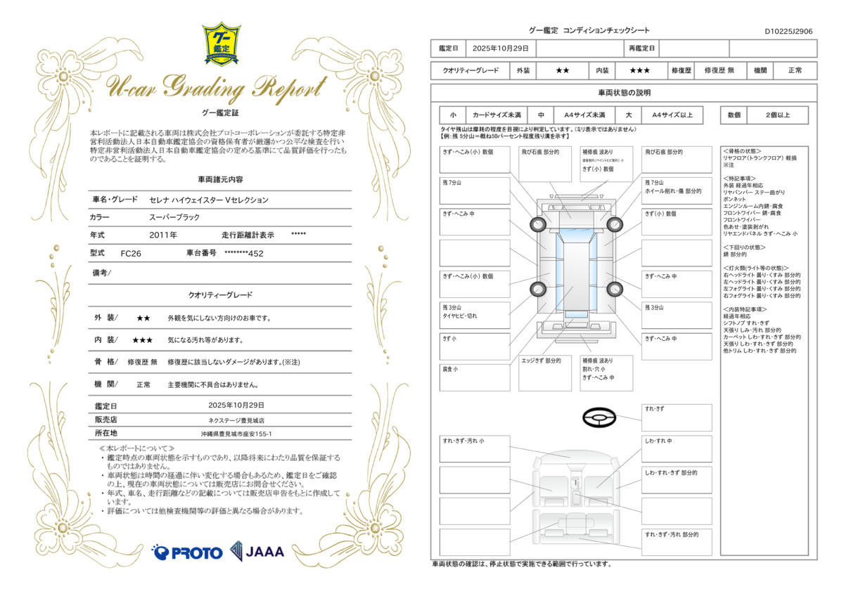 弊社では、全車『修復歴なし』のお車のみ取り扱っております。専任バイヤーによる厳選した仕入れの後、入庫後の車両チェックを行い、ネクステージが認定した高品質な中古車をご提供しております。 17