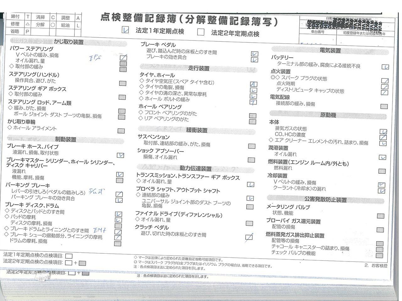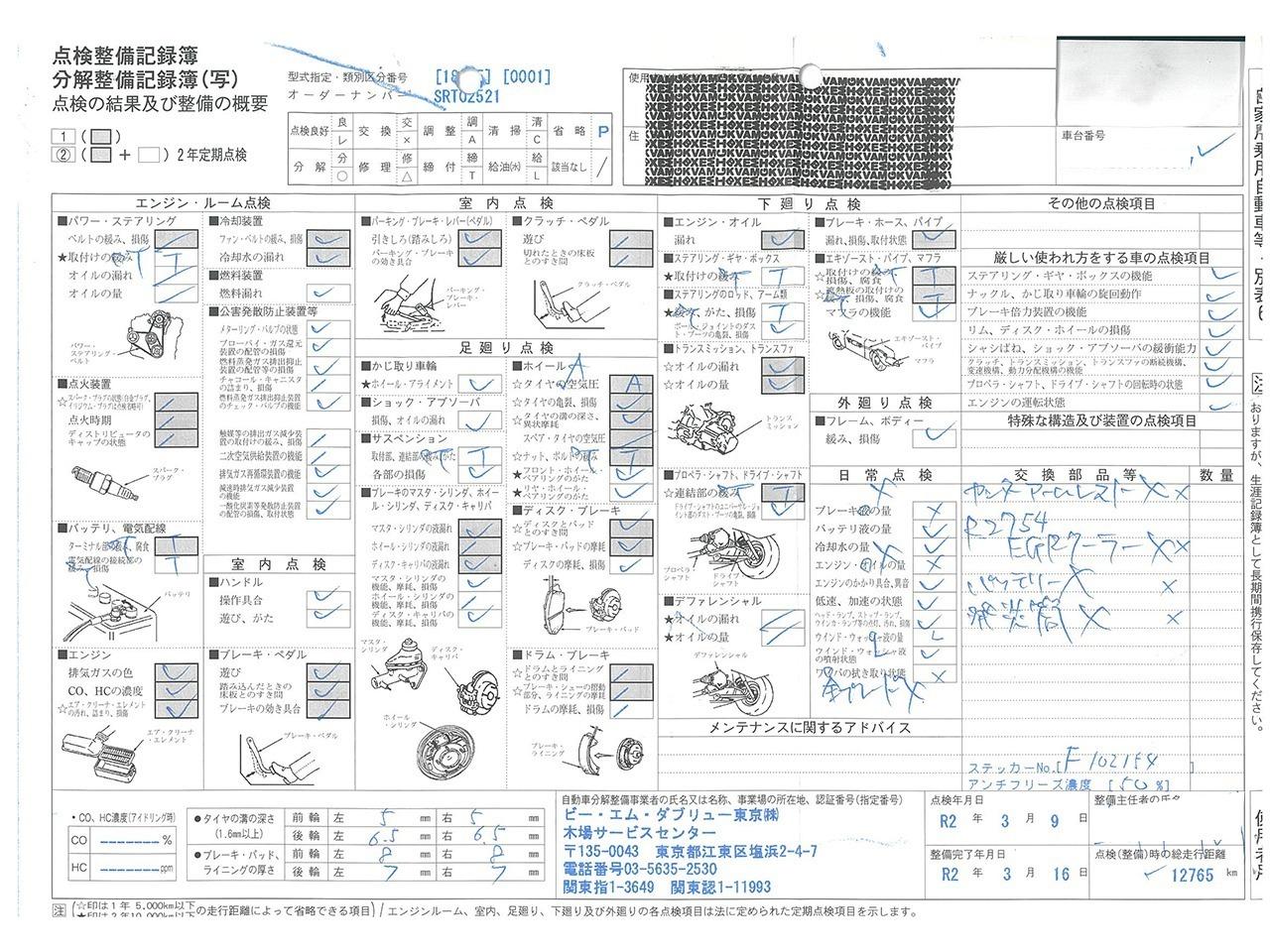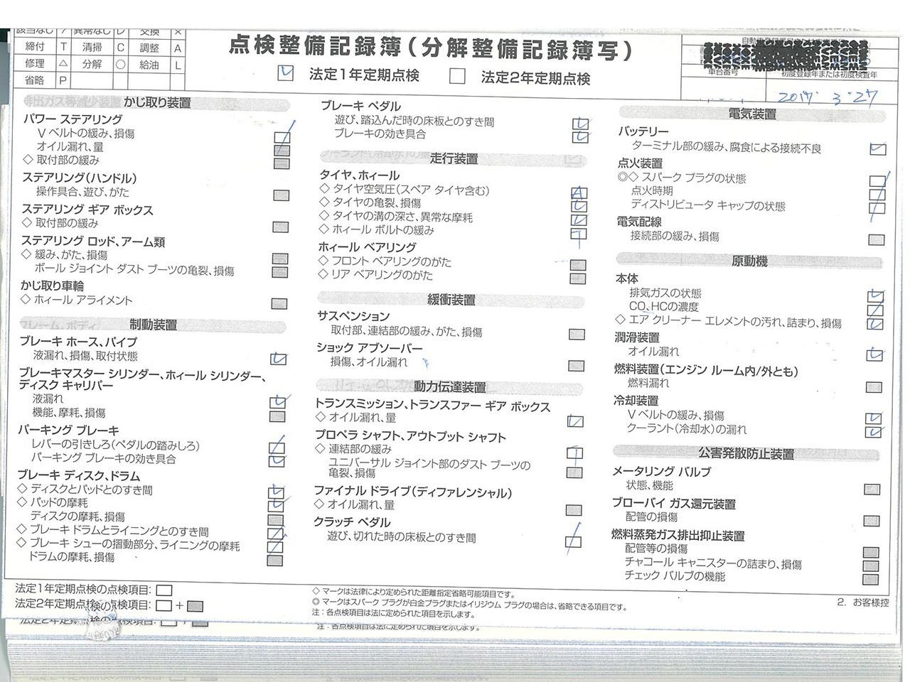整備付 ご契約後からご納車までに認証工場にて法定点検を実施致します。点検費用は支払総額に含まれております。点検整備記録簿を発行致します。 |