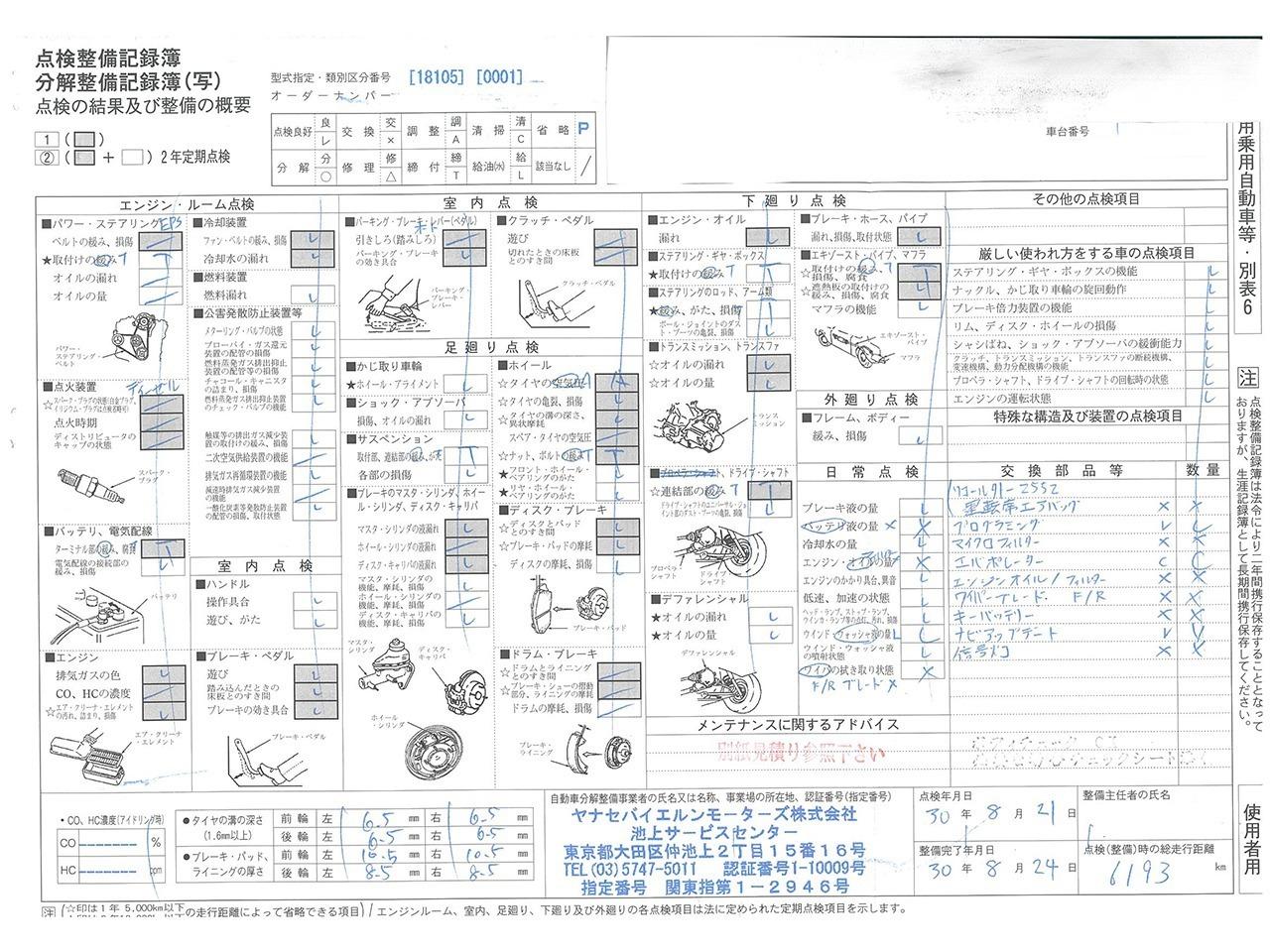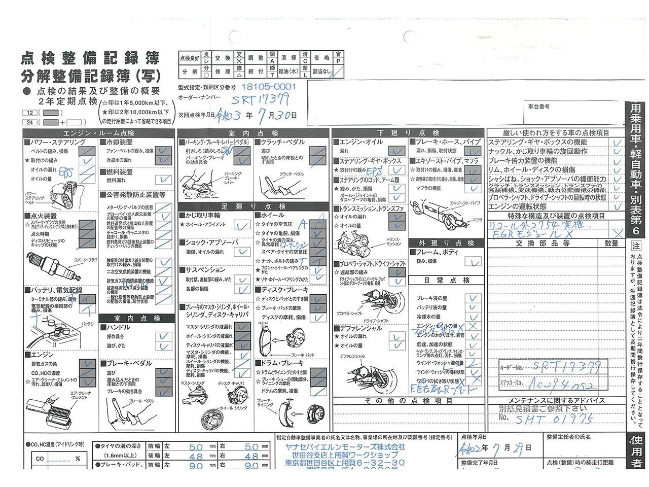 整備付 ご契約後からご納車までに認証工場にて法定点検を実施致します。点検費用は支払総額に含まれております。点検整備記録簿を発行致します。 |