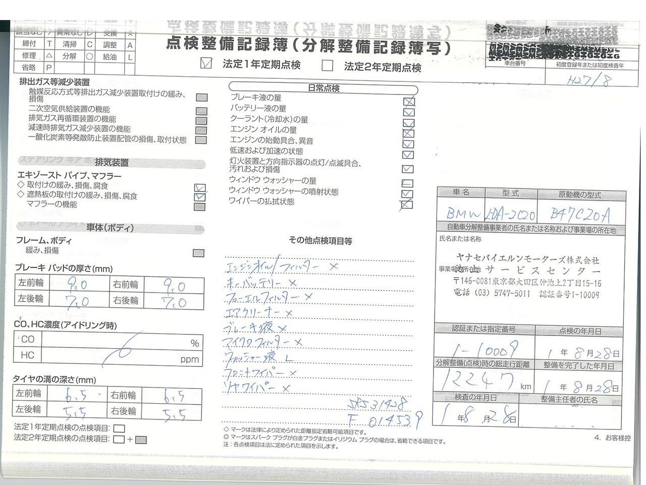 当社はBMWクオリティパートナー認定店です。ご納車前に認証工場にて点検致します。点検整備記録簿も発行致します。 |