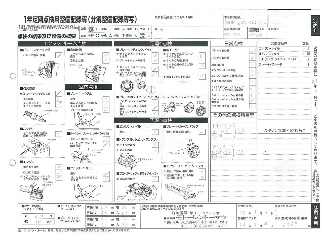 整備付 ご契約後からご納車までに認証工場にてBMW専門店ならではの110項目点検を実施致します。点検費用は支払総額に含まれております。点検整備記録簿を発行致します。 |