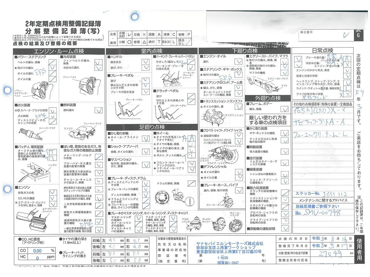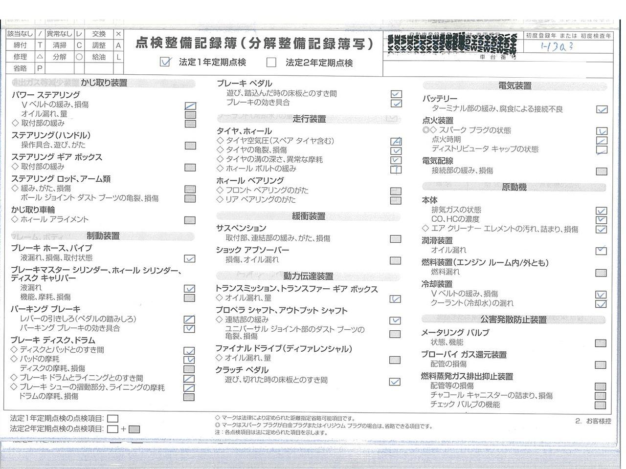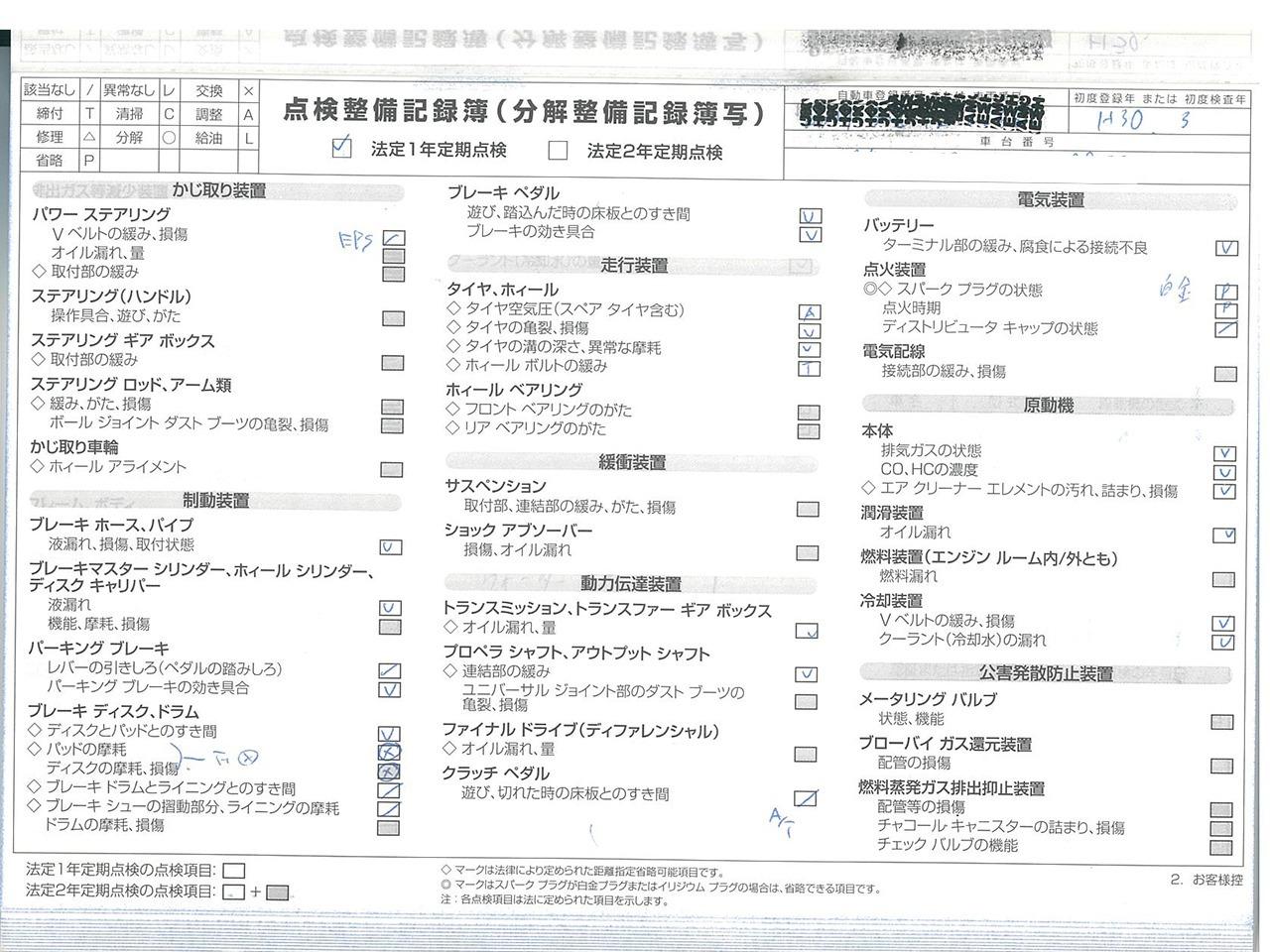整備付 ご契約後からご納車までに認証工場にて法定点検を実施致します。点検費用は支払総額に含まれております。点検整備記録簿を発行致します。 |