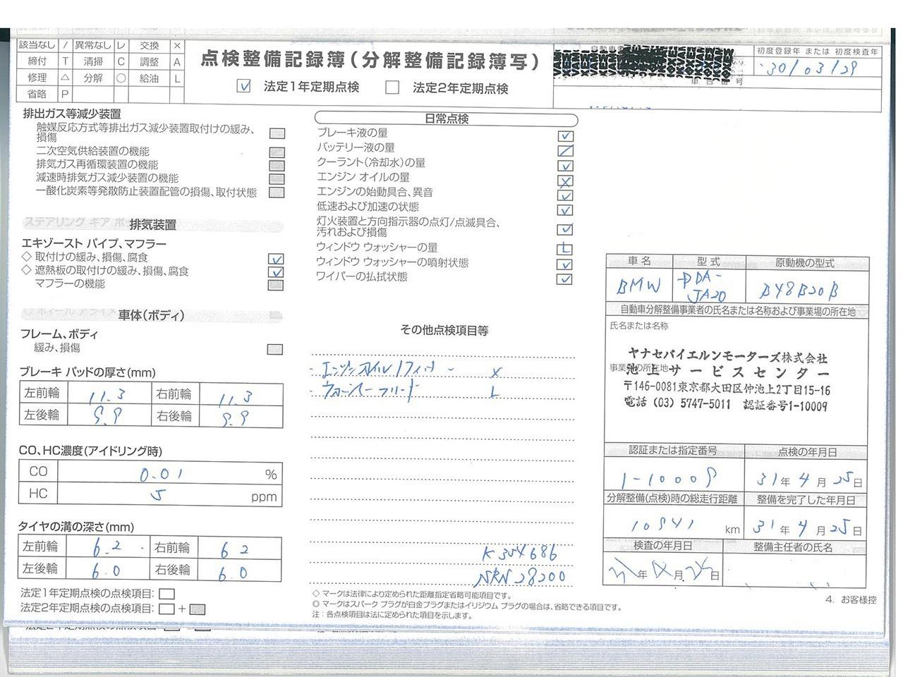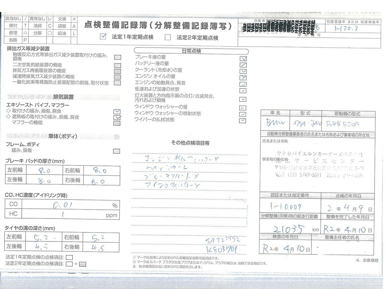 整備付 ご契約後からご納車までに認証工場にてBMW専門店ならではの110項目点検を実施致します。点検費用は支払総額に含まれております。点検整備記録簿を発行致します。 |