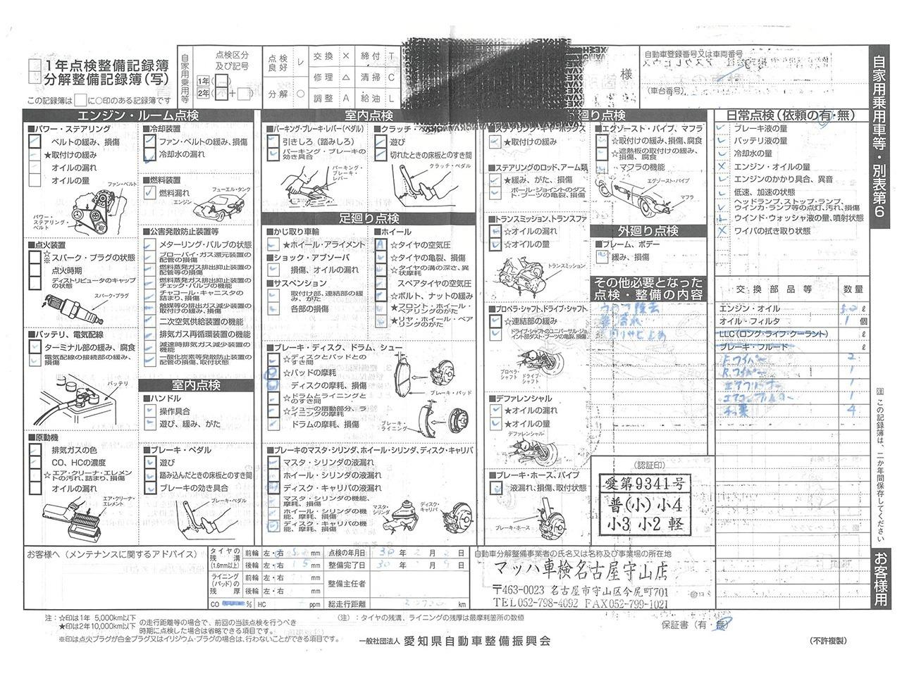 整備付 ご契約後からご納車までに認証工場にて法定点検を実施致します。点検費用は支払総額に含まれております。点検整備記録簿を発行致します。 |