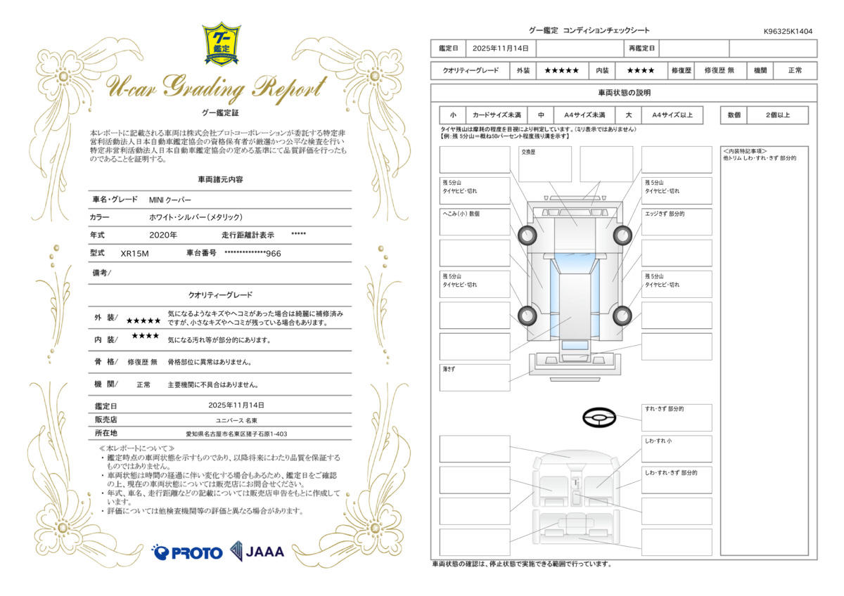 ●当店では第三者機関による車両品質鑑定を導入し、修復歴車を排除。鑑定書が発行されますので、ぱっと見ただけでは分からない箇所まで納得した上でご検討いただけます。※一部未実施の場合がございます。 17