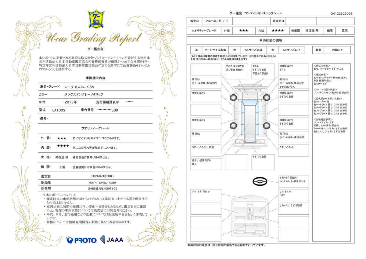 ※実際にお渡しするコンディションチェックシートにつきましては、形式および表示項目が異なる場合がございます。