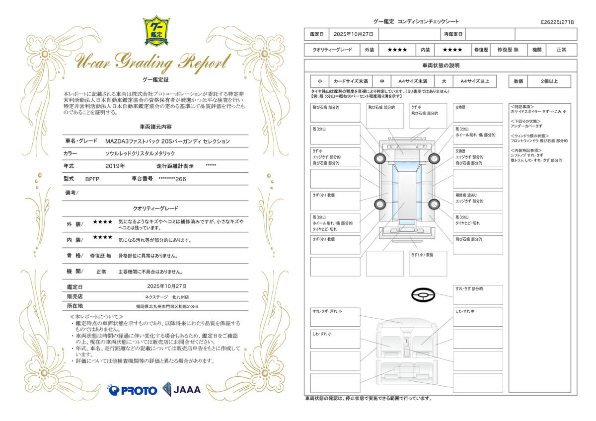 弊社では、全車『修復歴なし』のお車のみ取り扱っております。専任バイヤーによる厳選した仕入れの後、入庫後の車両チェックを行い、ネクステージが認定した高品質な中古車をご提供しております。 15