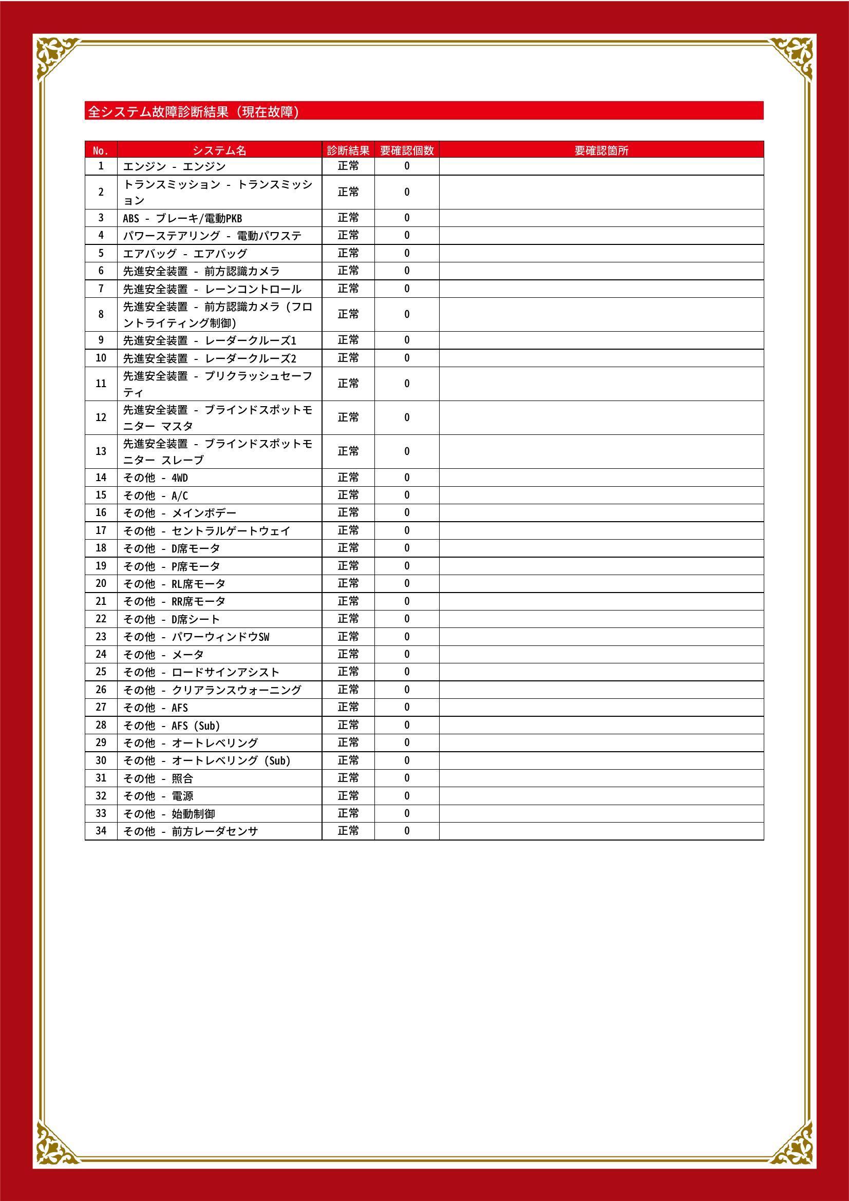計95項目 3ヶ月・3000km以内ならエンジン、トランスミッション、ハイブリッド、ステアリング、ブレーキの各機構における主要項目を無償修理(または交換)いたします。 |