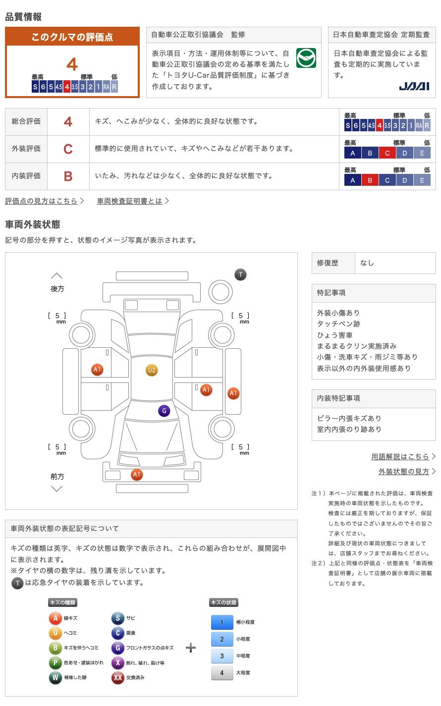 トヨタ認定車両検査員が正しく厳しく車両を検査、修復歴はもちろん小さな傷も正確にお伝えします。 74