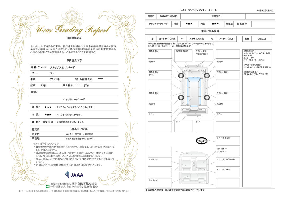 | 保証修理受付先 | 日本国内のHondaCars店、U−Select店であればどこでも修理対応が可能です。別途ホンダトータルケア(無料)にご登録頂ければ購入店舗までの無料ロードサービスもございます。 |