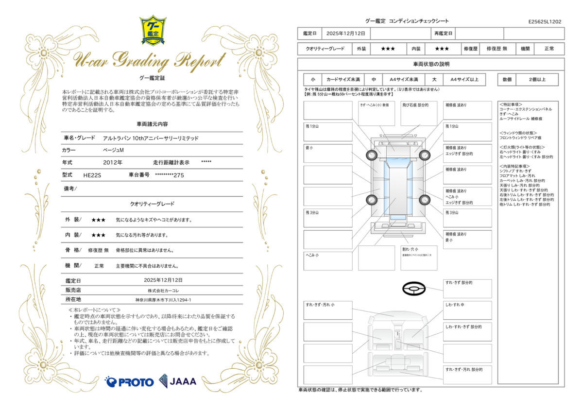[保証付]:12ヶ月・走行無制限 1年間、走行距離・利用回数無制限の無料保証が御座います。2年目以降の更新も可能です。保証加入には一定の条件を満たす必要があります。詳しくはスタッフまでお問い合わせください。 |