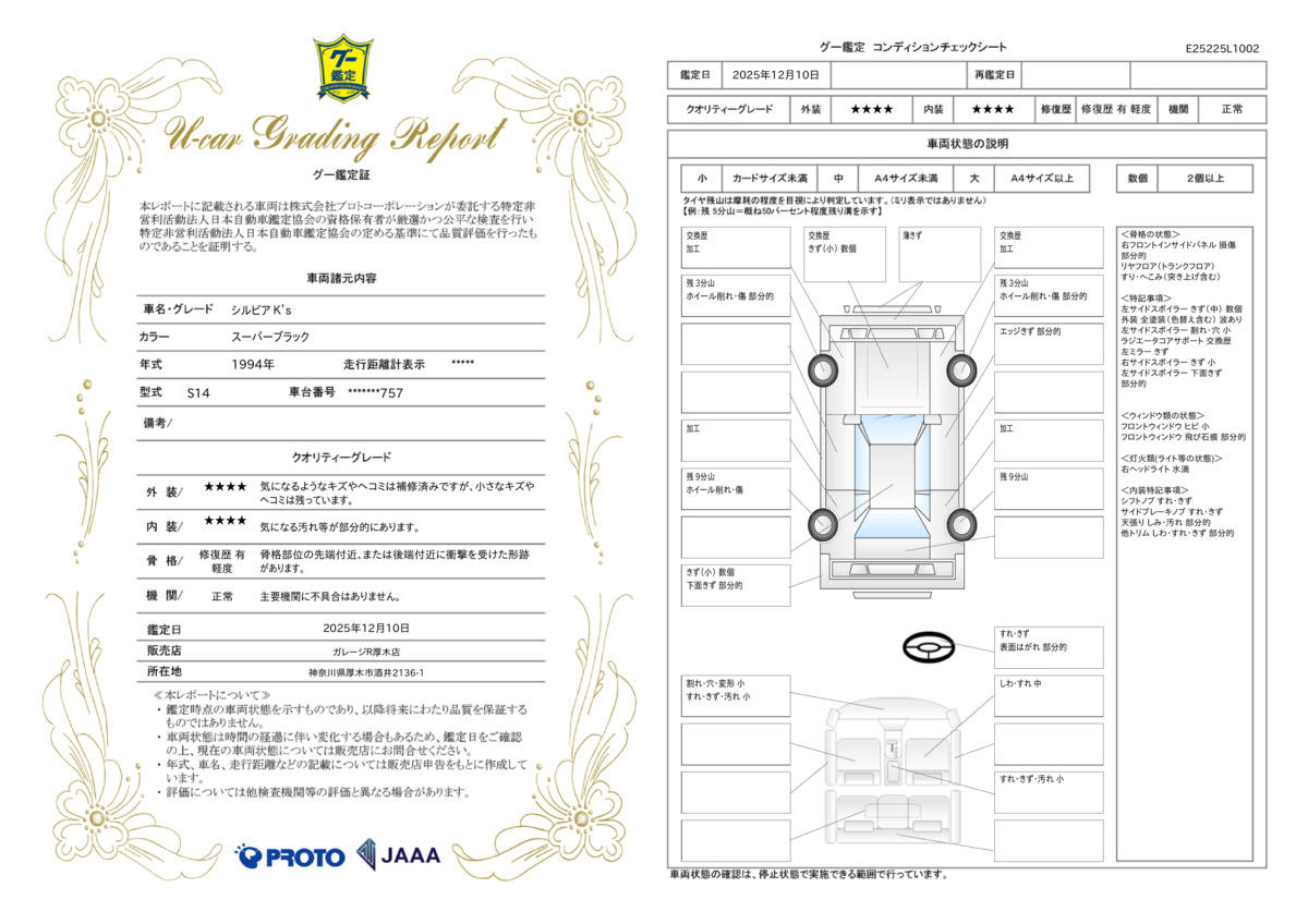 鑑定書は外装、内装の状態なども公開しています。メーター改ざん車両等は鑑定証は発行されません。一台一台が異なる一点物となります為、是非ご検討の際にはご確認ください。