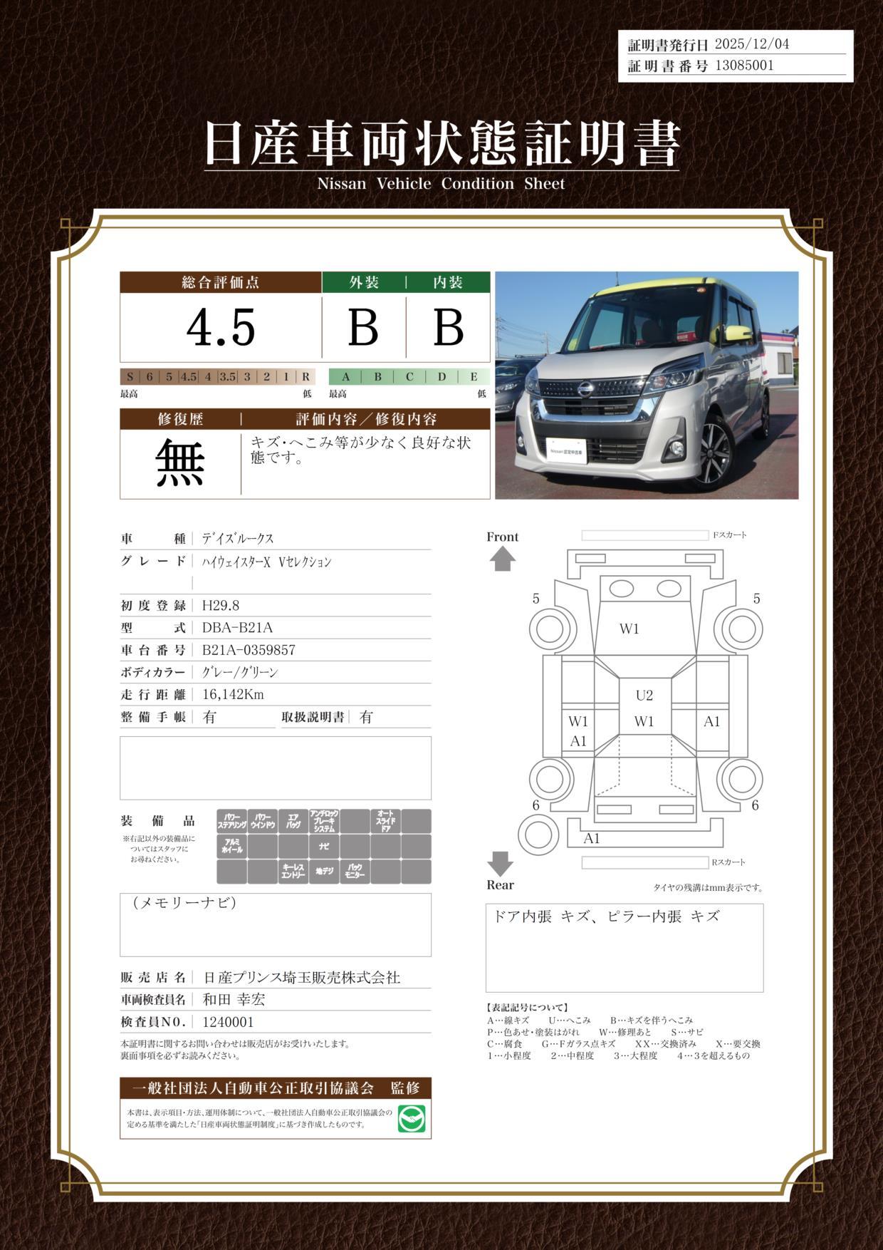 ●全車保証付き!全国3000ヵ所の日産サービス工場で修理可能です●1年間走行距離無制限、無料保証では含まれることが少ない バッテリーも保証対象となります。●納車後1ヵ月または1000Kmの無料点検も受けていただけます。●ワイド保証ライト(3ヶ月保証、30万円未満)