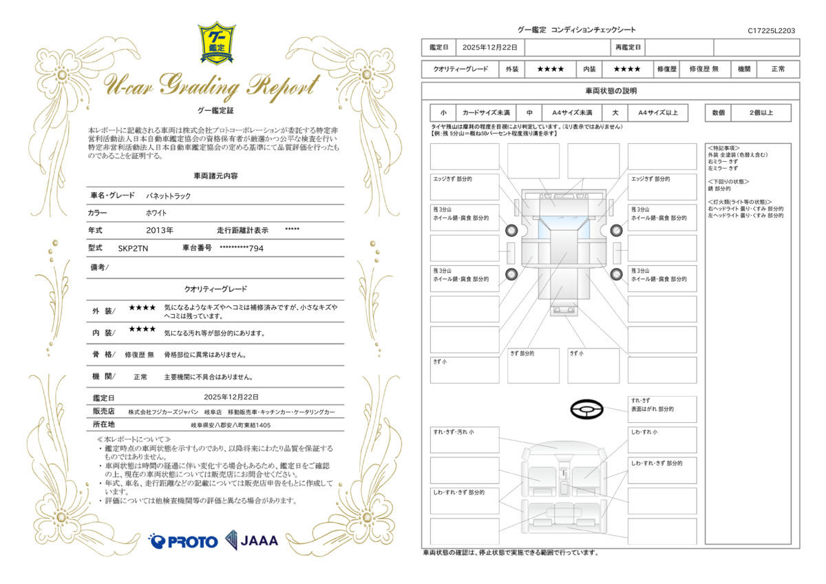 弊社にて点検整備を実施した車両は1ヵ月又は1000kmまでの保証が付帯致します。保証部位:エンジン・ミッション・デファレンシャル