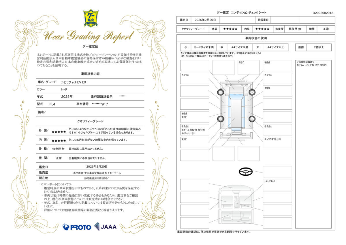 計260項目 保証項目につきましては、新車保証(メーカー保証)の内容と同じ(5年間の特別保証と3年間の一般保証)になります。新車保証の内容につきましては新車の保証書(メンテナンスノート)に記載してあります。 |