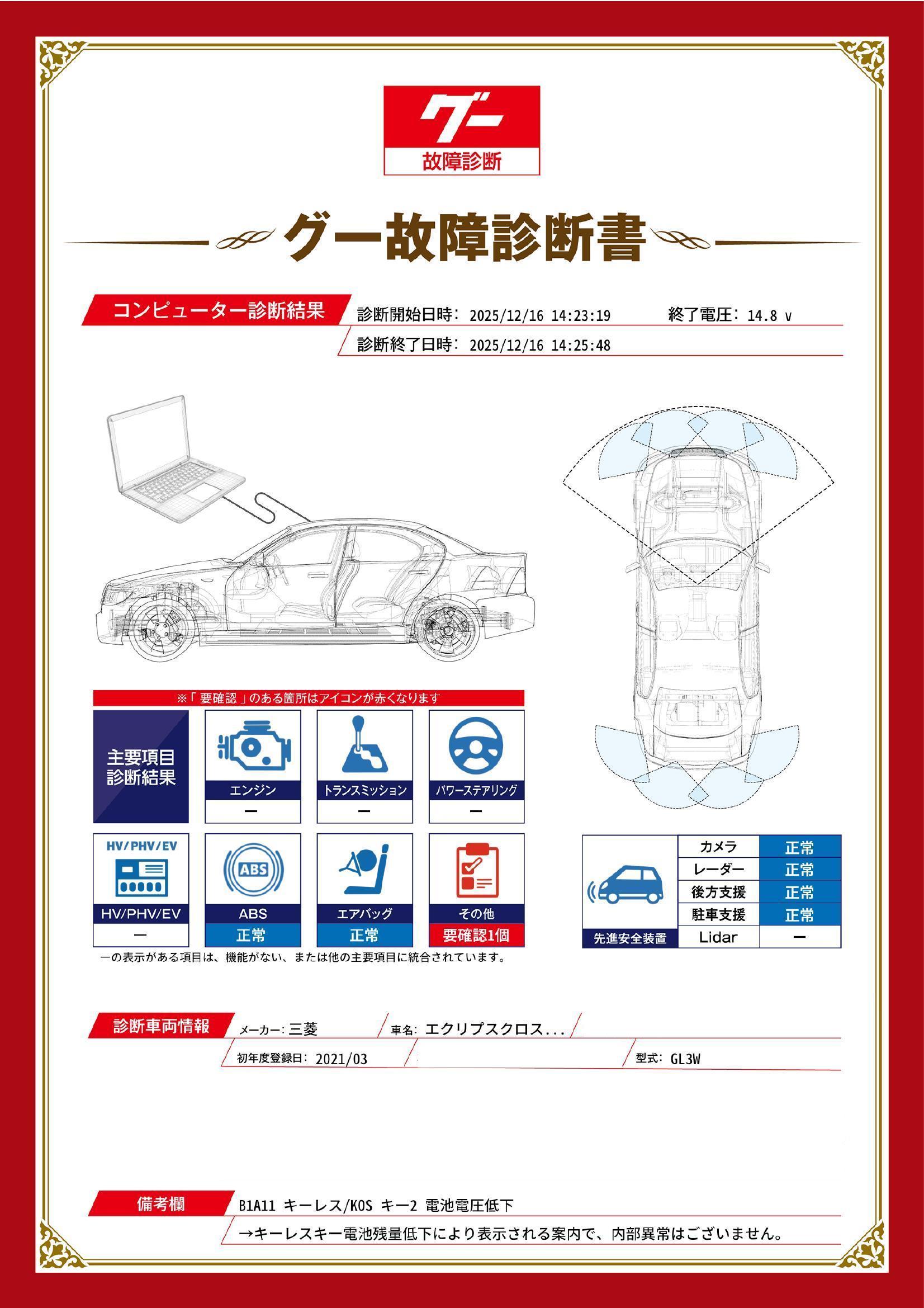 エンジンオイル・発煙筒・ワイパーゴム・オイルフィルター・キーレス電池・エンジン添加剤を新品に交換してご納車致します。 |