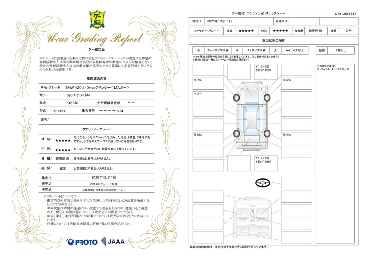 [保証付]:24ヶ月・走行無制限 エンジンやトランスミッション、ブレーキなどの主要部分はご購入後2年間、走行距離に関係なく保証します。万一、修理が必要な場合は工賃まで含めて無料で対応。完成度の高いBMW車は、ご購入後も安心です。 |