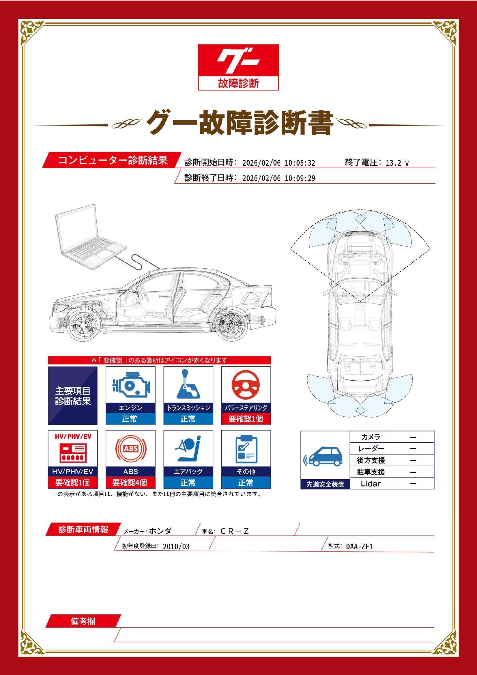 | 保証項目 | 消耗品を除くエンジン・ブレーキ・サスペンション・カーナビ等、保証書に指定した幅広い対象部品を保証します!詳しくはスタッフまで問い合わせください! |