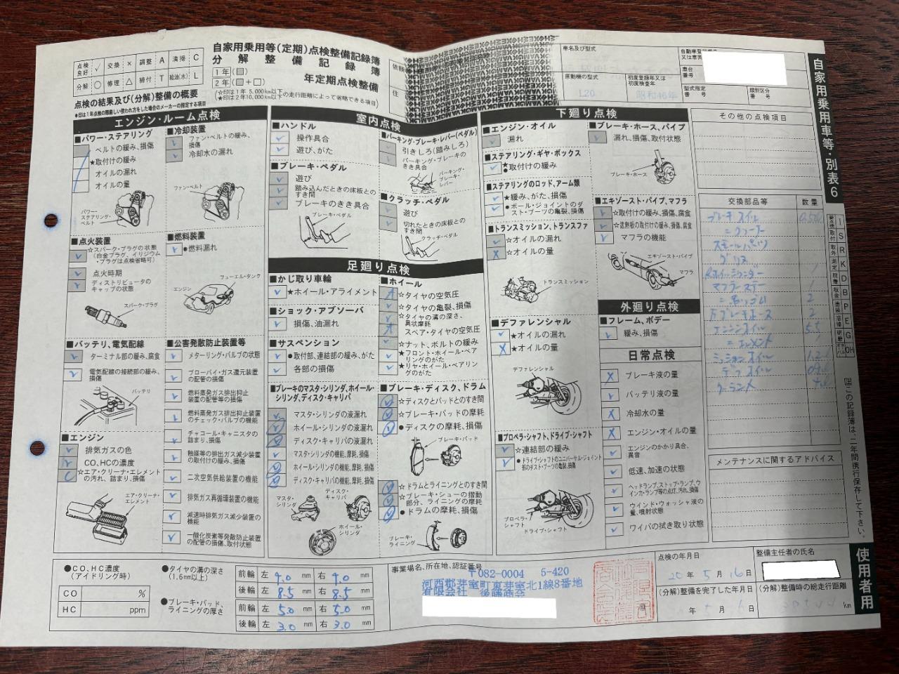 • 点検整備記録簿あり