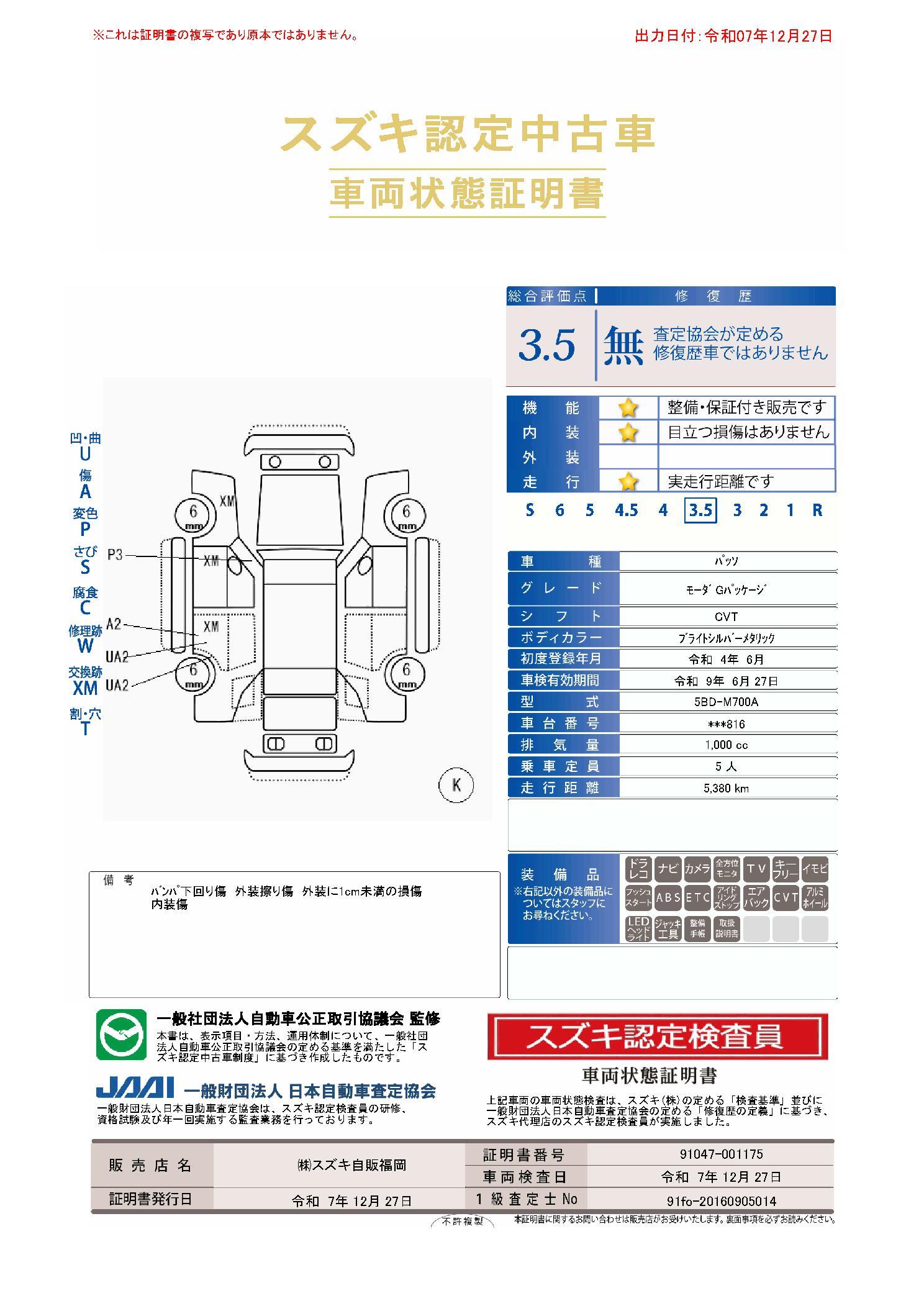 | 保証について | [保証付]:12ヶ月・走行無制限 |