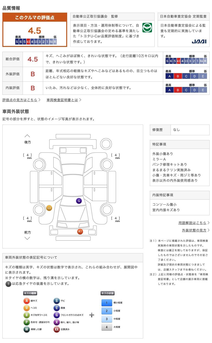 トヨタ認定車両検査員が正しく厳しく車両を検査、修復歴はもちろん小さな傷も正確にお伝えします。 74