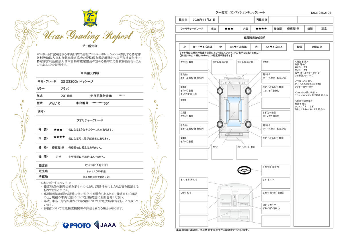 [保証付]:12ヶ月・走行無制限 仕上がりには万全を期しておりますが、万一不具合が生じた場合、保証書および保証ガイドに示す条件に従って無料で修理を行います。レクサス中古車ならではの保証制度を全国レクサス店にてお受けいただけます。 |