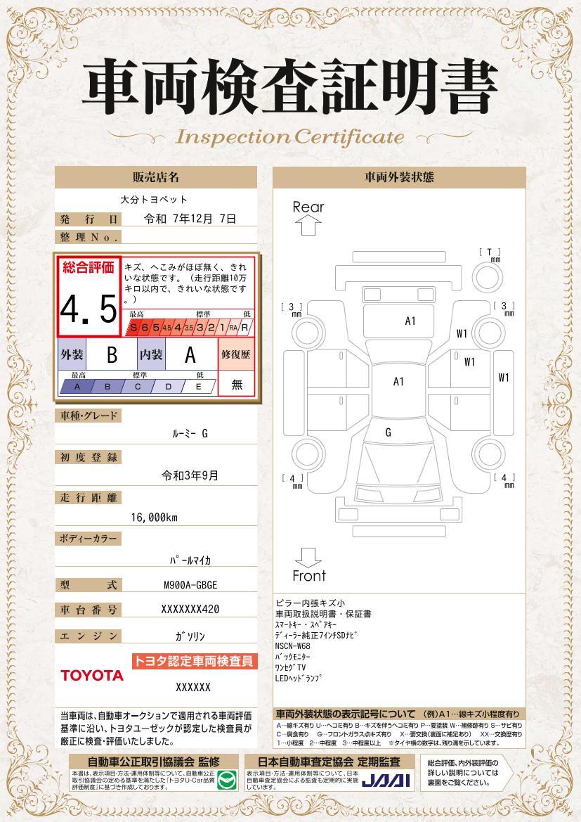 トヨタ ルーミー G ワンセグ メモリーナビ ミュージックプレイヤー接続可 バックカメラ 衝突被害軽減システム ドラレコ 両側電動スライド LEDヘッドランプ ワンオーナー アイドリングストップ