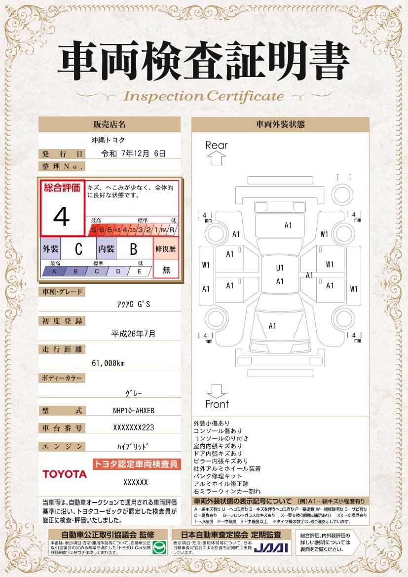 トヨタ アクア G G’s フルセグ メモリーナビ DVD再生 ミュージックプレイヤー接続可 バックカメラ ETC ドラレコ LEDヘッドランプ 記録簿